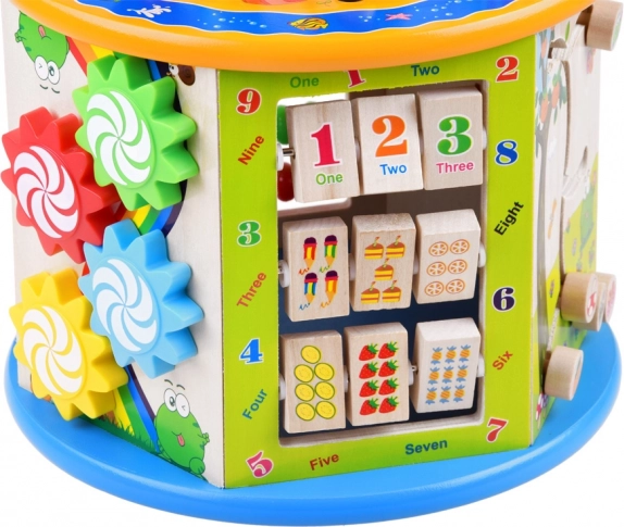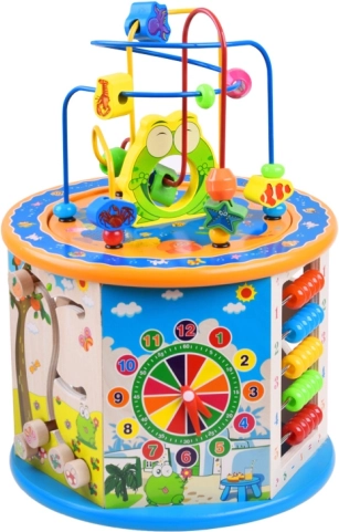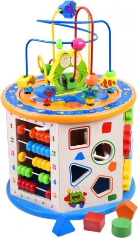 Dieser Holz Lernwürfel bietet eine Vielzahl an Aktivitäten, die Ihrem Kind helfen, neue Fähigkeiten und Kenntnisse zu erlernen. Es beinhaltet viele Funktionen, einschließlich eines Perlenlabyrinths, eines bunten Abakus und einer Formensortierung. Alle Elemente sind für kleine Kinderhände ausgelegt, was ein sicheres und bequemes Spielen gewährleistet.