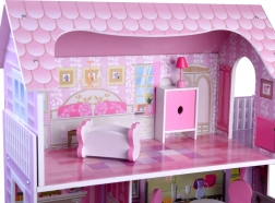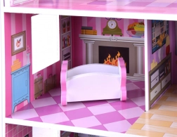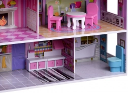 Das rosaviolette Holz-Puppenhaus begeistert mit detailreichen Illustrationen und einer offenen Architektur für einfachen Zugang zu jedem Raum. Drei Etagen bieten fünf voll ausgestattete Bereiche sowie eine Terrasse und laden zu langen Stunden fantasievollen Spiels ein. Dank der stabilen Holzkonstruktion und durchdachter Proportionen ist es das ideale Zentrum des Kinderzimmers.