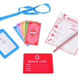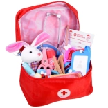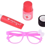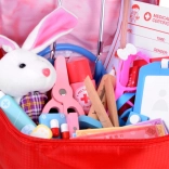 Hinweis: Alle Elemente sind Requisiten. Während des Spiels keine „Medikamente“ oder andere Kleinteile in den Mund stecken. Farbe/Muster des Plüschkaninchens kann variieren.