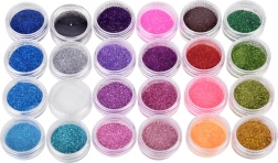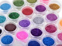 Bunte Glitzer in transparenten Döschen ermöglichen das Mischen von Farbtönen und das Kreieren einzigartiger, funkelnder Effekte auf der Haut.