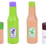 Textile Gemüsescheiben, hölzerne Gewürzfläschchen und Servierlöffel ermöglichen Kindern, einen „echten“ Salat zuzubereiten und die Fantasie beim Küchenspiel zu entfalten.