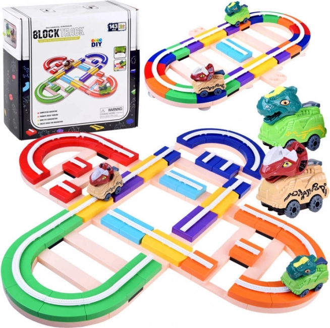Die Dinosaurier-Rennstrecken-Bausatz bietet Kindern die Möglichkeit, die Route nach ihrer Fantasie zu bauen und umzubauen. Die Streckenteile lassen sich einfach zusammenklicken und können auf dem Tisch und an der Wand verlaufen – die mitgelieferten Saugnäpfe halten auf glatten Oberflächen wie Glas. Dank der Führung in den Schienen bewegen sich die Autos sicher horizontal wie vertikal, und durch die richtige Ausrichtung der Blöcke lässt sich die Fahrtrichtung leicht ändern.