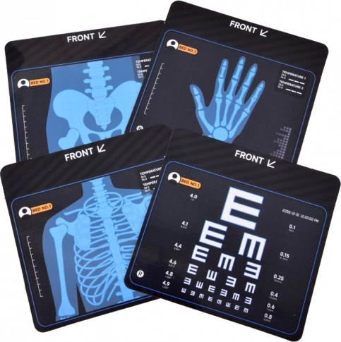 Der medizinische Monitor enthält einen Schlitz, in den Karten beispielsweise mit einer Sehtafel oder Röntgenaufnahmen eingelegt werden können. Nach dem Einsetzen der Batterien und dem Drehen des Ein-/Ausschalters gibt er Geräusche beim Überwachen der Vitalfunktionen des Patienten von sich.