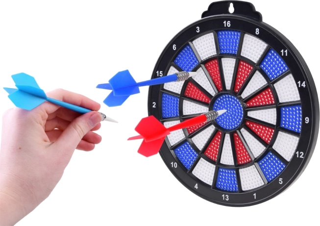 Das Dartbrett ist für den Freizeitgebrauch mit roten, blauen und weißen Segmenten für präzises Zielen und Punktesammeln konzipiert.