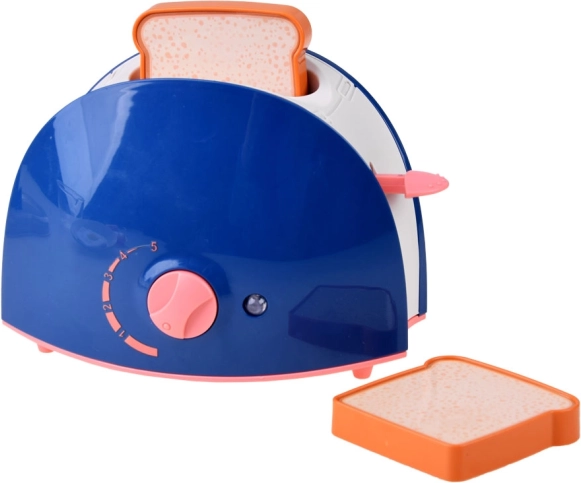 Der Toaster ist mit einem Drehknopf und Hebelmechanismus ausgestattet, die Fantasie anregen und manuelle Geschicklichkeit fördern.