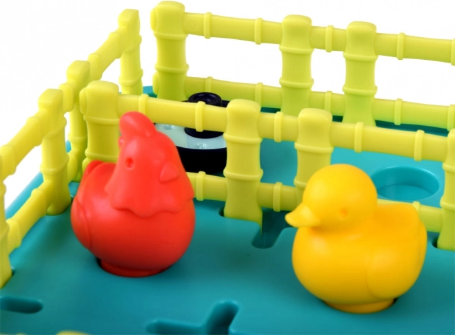Ein Plastikspielbrett mit hellen Farben von Tieren und Zäunen bietet ein visuell ansprechendes Erlebnis, das die Vorstellungskraft und Kreativität stimuliert.