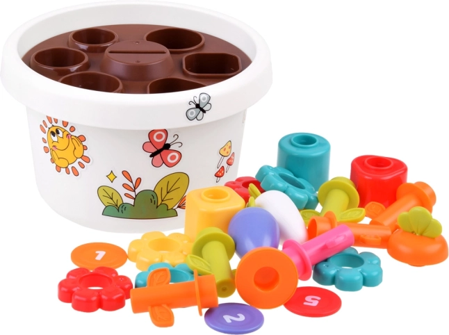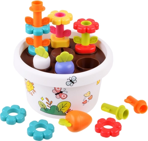 Jeder Teil des Spielzeugs bietet verschiedene Möglichkeiten, wie Kinder grundlegende Farben und Formen lernen können. Alle Teile lassen sich leicht im Blumentopf verstauen, was Platz spart und Ordnung hält.