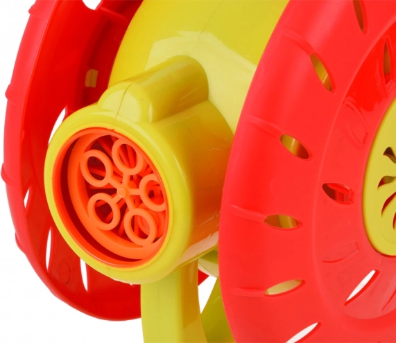 Die Produktion der Blasen wird von fröhlicher Musik und Lichteffekten begleitet.