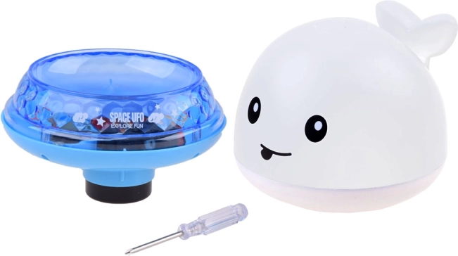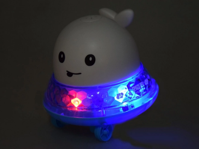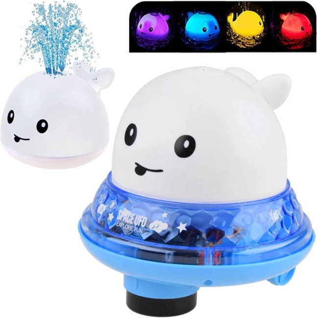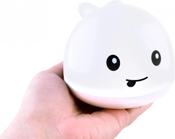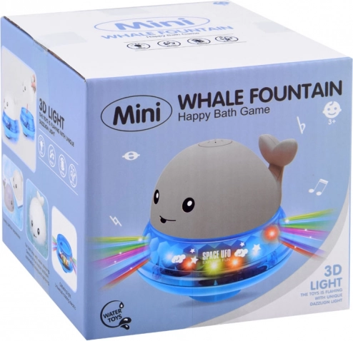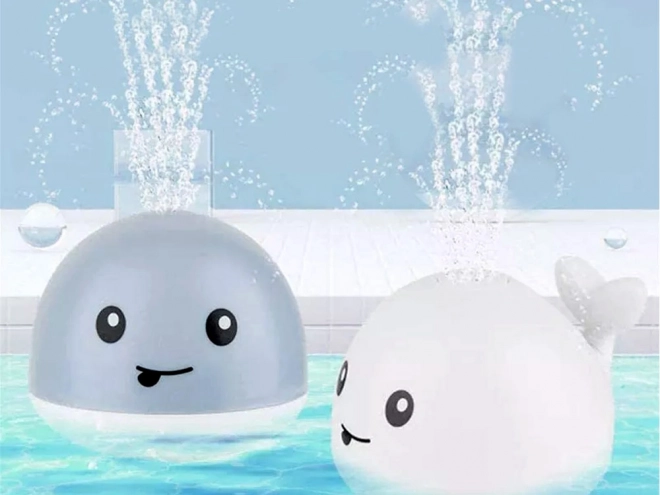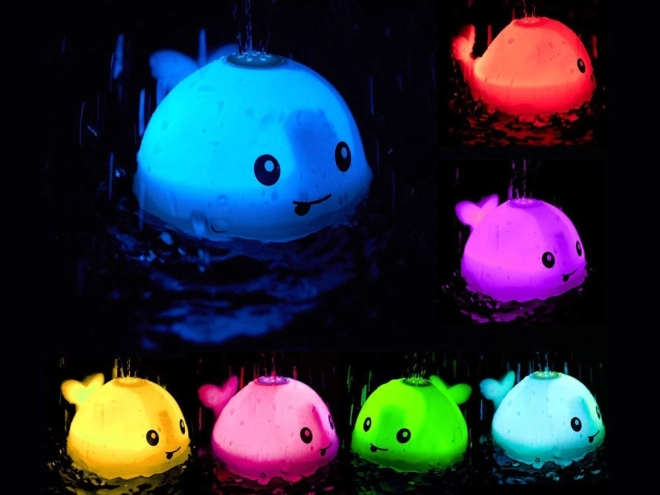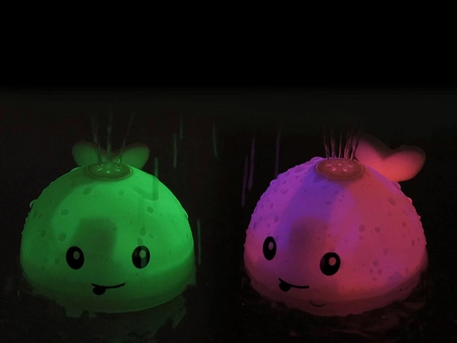 Beim Eintauchen startet der Wal von selbst, versprüht Wasser und leuchtet in bunten Farben – die perfekte Abwechslung für das abendliche Bad.