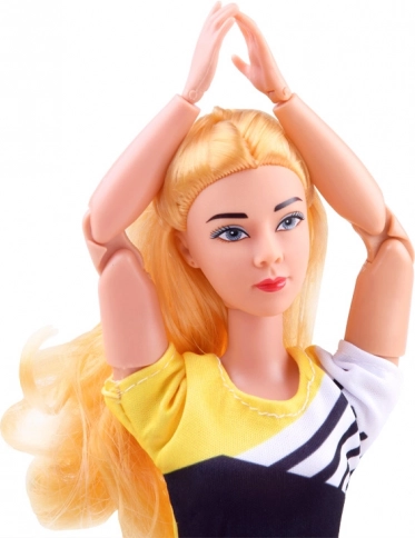 Die flexible Puppe mit langen blonden Haaren trägt ein sportliches Set mit elastischen Leggings und Top, damit sie bequem trainieren kann. Die Gelenkkonstruktion ermöglicht realistische Einstellungen von Armen, Beinen und Rumpf, sodass sie Lieblings-Asanas und Gymnastikposen leicht nachahmt.