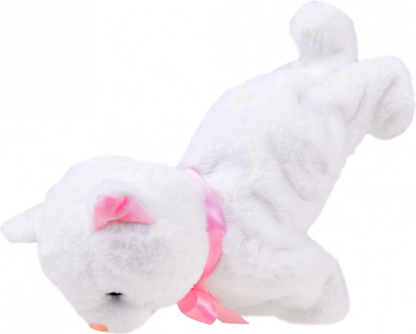 Bei Berührung der Pfoten oder Klatschen in die Hände wird das Kätzchen lebendig – es macht Katzengeräusche und führt fröhliche Bewegungen vor.
