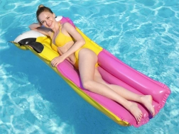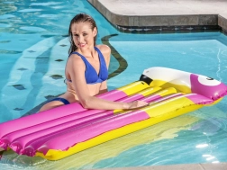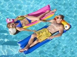 Die aufblasbare Liege Bestway Tropical Bird ist der ideale Begleiter für Pool und Strand. Angenehm weich, zugleich formstabil: Das robuste Vinyl sorgt für zuverlässige Tragfähigkeit und Komfort, während zwei separate Luftkammern zusätzliche Sicherheit und Stabilität auf der Wasseroberfläche bieten.