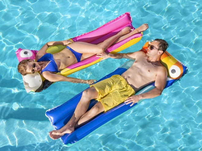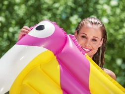 Ein integriertes aufblasbares Kissen stützt Kopf und Nacken für echte Erholung. Die farbenfrohe Sommergrafik mit Vogelmotiv verleiht Ihrem Wasserspaß Stil und gute Laune. Die leichte Konstruktion ermöglicht schnelles Auf- und Abpumpen sowie einfaches Tragen und Verstauen.