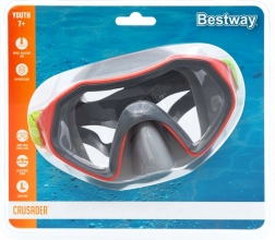 Gönnen Sie Kindern sichere und spaßige erste Schritte unter Wasser. Die Bestway Crusader Maske kombiniert robuste, latexfreie Materialien mit einer komfortablen Abdichtung, die zuverlässig das Eindringen von Wasser verhindert. Dank der leuchtenden Farben ist die Maske im Wasser gut sichtbar und leicht aufzusetzen.