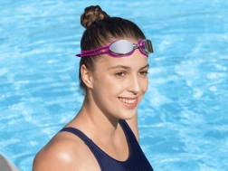 Genießen Sie klare Unterwassersicht mit verspiegelten Gläsern, die Reflexionen reduzieren und vor UV-Strahlung schützen. Die Antibeschlag-Beschichtung hilft, das Beschlagen zu minimieren, sodass Sie sich auf jeden Zug konzentrieren können. Weiche Silikonauflagen schmiegen sich sanft an das Gesicht und verhindern das Eindringen von Wasser.