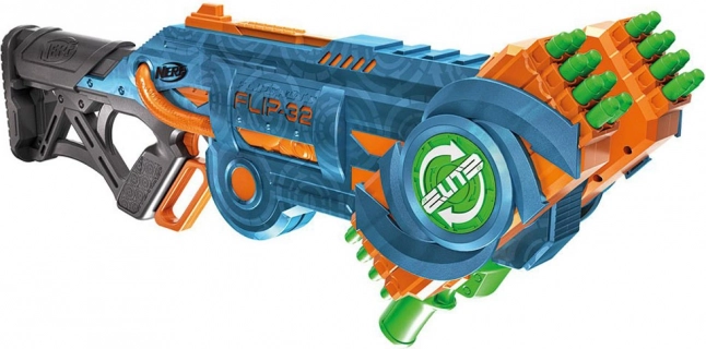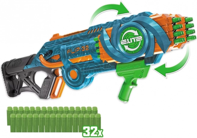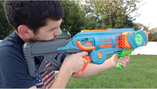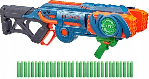 Nerf Elite 2.0 Flip-32 Blaster ist ideal für alle Fans von Schießspielen. Dank der doppelten Drehtrommeln und einer Kapazität von bis zu 32 Schaumstoffdarts wird er ein unverzichtbarer Begleiter für unterhaltsame Schießereien.