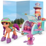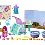 Das Mein kleines Pony Cocktail-Set inspiriert und unterhält Kinder mit schönen Pastellfarben und vielen interessanten Accessoires. Sunny kann mit ihrem mobilen Cocktailwagen reisen und köstliche Fruchtcocktails kreieren. Mit frei beweglichen Rädern und einem Helm zur Sicherheit ist sichergestellt, dass das Spielen nicht nur Spaß macht, sondern auch sicher ist.