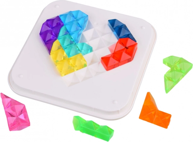 Entdecke unbegrenzte Möglichkeiten des kreativen Schaffens mit diesem einzigartigen Diamantenpuzzle. Das Set enthält 10 farbige Kunststoffstücke, die nach dem beigefügten Buch oder deiner eigenen Fantasie in verschiedene Muster arrangiert werden können. Das Brett hat zwei Seiten – eine mit Herz und die andere mit Quadrat. Alle Teile können nach dem Spielen praktisch in der durchsichtigen Box aufbewahrt werden, was das Aufräumen und Lagern erleichtert.
