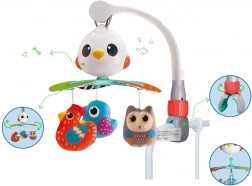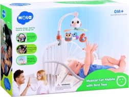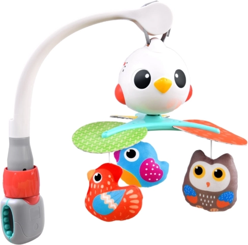 Dieses wunderschöne Baby-Karussell ist so gestaltet, dass es die visuellen, auditiven und taktilen Sinne Ihres Kindes stimuliert. Bewährte Lieder und angenehme Melodien sorgen dafür, dass das Baby zufrieden und beruhigt ist. Die drehbare Struktur ist mit hängenden Spielzeugen in Form von bunten Vögeln ergänzt, die zum Greifen und Berühren einladen.
