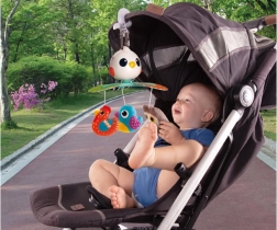 Die hängenden Spielzeuge in Form von Vögeln ziehen die Aufmerksamkeit Ihres Kindes an und motivieren es, die Hände auszustrecken und zu spielen.