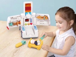 Spezielle medizinische Ausstattung: - EKG-Monitor - Röntgen des Brustkorbs - 3 medizinische Tasten (Herz, Spritze, grünes Fragezeichen) für gesundheitsbezogene Soundeffekte.