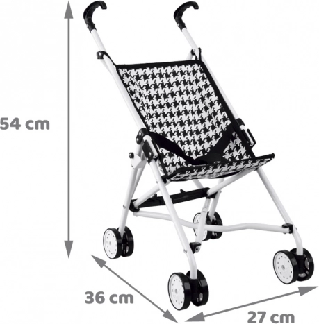 Entdecken Sie den perfekten Begleiter für kreatives Spiel – den zusammenklappbaren Puppenwagen mit schwarz-weißem Pepito-Muster. Der robuste Metallrahmen, bequeme Griffe und der Sicherheitsgurt sorgen dafür, dass die Puppe sicher sitzt und das Kind die Fahrt mühelos genießen kann. Dank der kompakten Maße lässt sich der Wagen leicht tragen und verstauen.