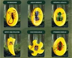 Die gereinigten Funde können im Fossilienbeutel aufbewahrt oder auf dem Präsentationsständer ausgestellt werden. Ebenfalls enthalten sind Informationskarten auf Englisch mit Insektenabbildungen – eine tolle Möglichkeit, Spiel und Grundlagen der Naturkunde sowie Fremdsprachenlernen zu verbinden.
