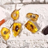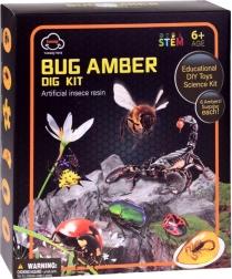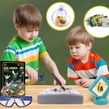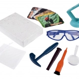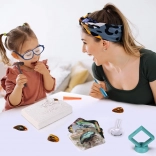 Verwandeln Sie das Kinderzimmer in ein kleines paläontologisches Labor. Im Gipsabguss sind 6 „Bernsteinstücke“ mit eingeschlossenen Insekten verborgen, die das Kind Schritt für Schritt mit Hammer, Meißel und Pinsel freilegt. Für Sicherheit sorgt die Schutzbrille, für detaillierte Untersuchungen dient die Lupe.