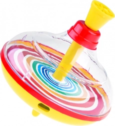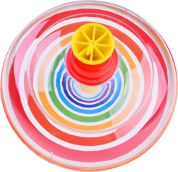 Dieses zeitlose Drehspielzeug bereitet Generationen Freude. Mehrfach den oberen Kolben drücken und der Kreisel rotiert um seine Achse – die farbigen konzentrischen Ringe erzeugen einen faszinierenden Regenbogeneffekt, der Kinder zuverlässig fesselt. Beim Drehen gibt der Kreisel ein typisches Geräusch von sich, das den Spielspaß zusätzlich steigert.