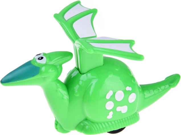 Entdecken Sie das verspielte Set fahrender Dinosaurier, das Fantasie und Feinmotorik fördert. Jeder Dino hat einen einfachen mechanischen Antrieb – drücken Sie das entsprechende Element (Maul, Flügel oder Kragen) und die Figur fährt nach vorne. Fröhliche Farben und runde Formen sind ideal für kleine Hände.