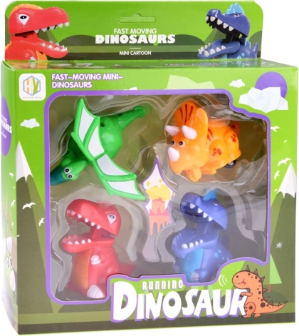 Set aus 4 fahrenden Dinosauriern mit Druckantrieb
