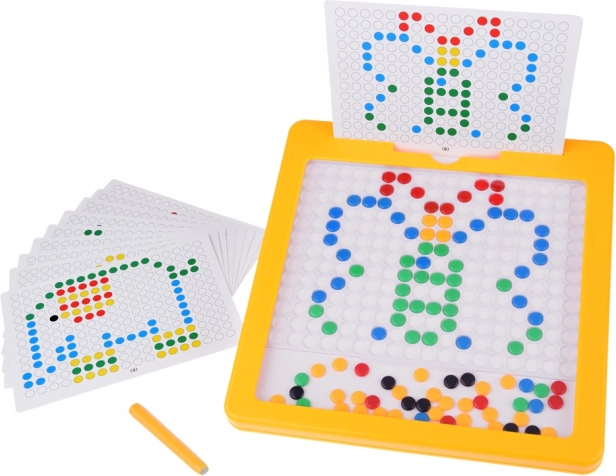 Das pädagogische magnetische Mosaik YOKOMISIADA vereint Spaß und Lernen. Kinder setzen bunte Stifte in das Raster nach Vorlagen (Auto, Schmetterling, Blume u. a.) oder gestalten eigene Bilder. Die magnetische Oberfläche erleichtert die Handhabung und hält die Elemente an Ort und Stelle – für reibungsloses Spielen ohne unnötige Unordnung.