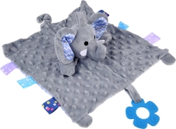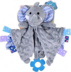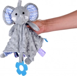 Ein niedliches Plüsch-Schmusetuch in Form eines Elefäntchens bietet dem Baby sanfte Geborgenheit, einen Silikon-Beißring zur Linderung beim Zahnen sowie verschiedene Texturen und Etiketten für taktile Entdeckungen. Leicht, sicher und ideal für Kinderbett, Kinderwagen und Autositz.