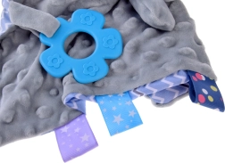Plenková Schmusehase mit Etiketten und Beißring für Babys – Elefäntchen