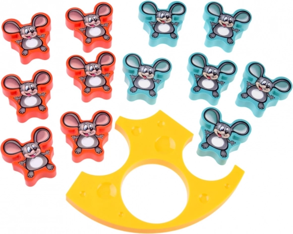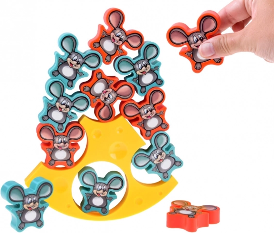 Lege die Mäuse auf die Käsebasis, ohne dass die Konstruktion kippt. Toller Trainingsspaß für Konzentration, Feinmotorik und Geduld.