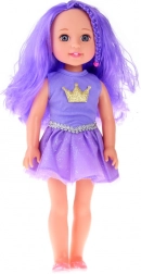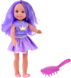 Elegante Puppe mit langen lilafarbenen Haaren und Frisier-Zubehör, die jede kleine Prinzessin begeistern wird. Sie hat bewegliche Gliedmaßen, dichtes, kämmbares Haar und trägt ein lilafarbenes Kleid mit goldener Krone und silbernem Gürtel. Enthalten sind ein rosa Kamm und rosa Ballettschühchen für endlose Geschichten und kreatives Spiel.