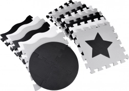 Eine stilvolle und sichere Kinder-Spielmatte aus Schaumstoff-Puzzles in Grau-, Schwarz- und Weißtönen schafft eine weiche und hygienische Spielfläche. Das Set enthält 16 große Teile mit herausnehmbaren Formen, rutschhemmender Oberfläche und Wärmeisolierung. Dank der Möglichkeit, auch in der Höhe zu verbinden, lässt sich ein kleiner abgesteckter Bereich/Spielgehege für Spielzeug oder Bälle gestalten.