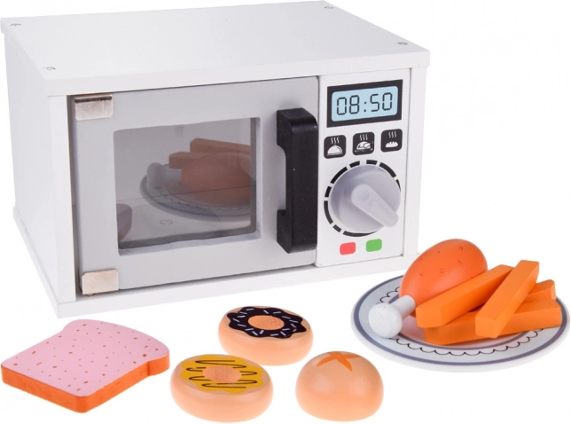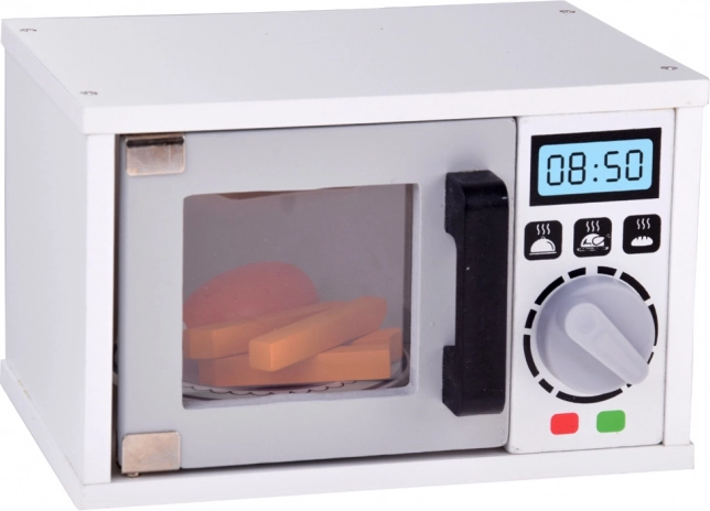 Die Mikrowelle ist aus hochwertigem Holz gefertigt, was Langlebigkeit und Sicherheit beim Spielen gewährleistet.