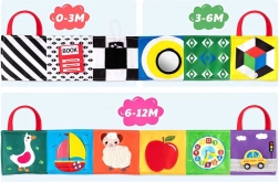 Magisches Textilbuch geeignet für die Kleinsten ab dem ersten Lebenstag. Dieses weiche Buch enthält 12 Bilder mit kontrastreichen Formen und fröhlichen Tier- und Gegenstandsmotiven.