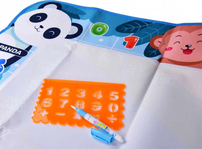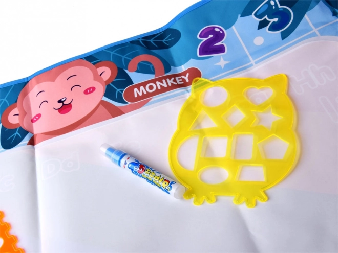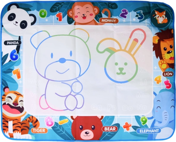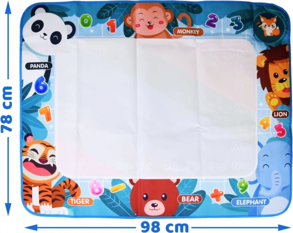 Diese farbenfrohe Matte mit den Maßen 98 x 78 cm hat einen bunten Hintergrund, der jedes Werk in ein gemaltes Meisterwerk verwandelt. Die Ränder der Matte sind mit Tierbildern mit englischen Namen verziert, was es den Kindern ermöglicht, beim Spielen Englisch zu lernen. Das Spiel ist völlig sicher – einfach den Stift mit Wasser füllen und loslegen mit Zeichnen, Malen oder Schreiben.