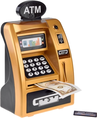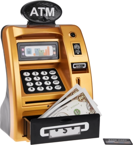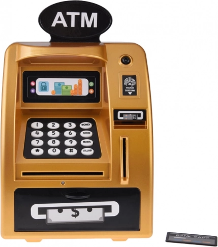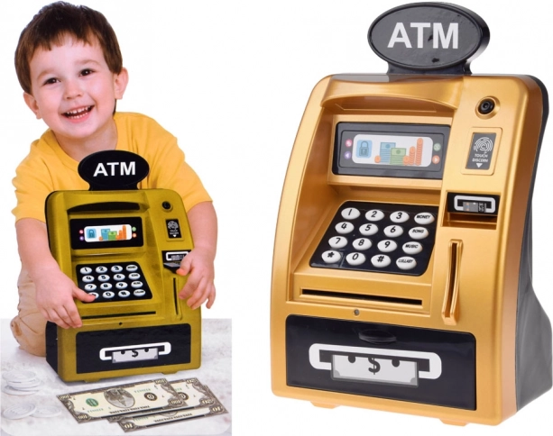 Dieser goldene Kinderbankautomat bringt auf unterhaltsame Weise grundlegende Lektionen der finanziellen Bildung für Kinder bei. Kinder können lernen, wie man Banktransaktionen mit falschen Banknoten und Karten in einem freundlichen häuslichen Umfeld durchführt.