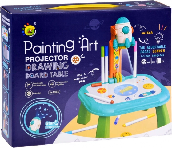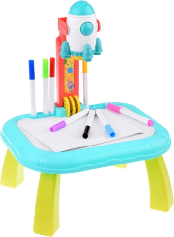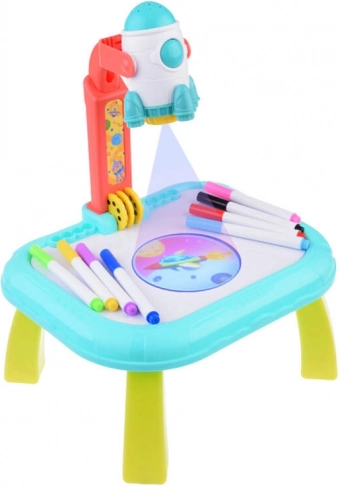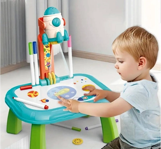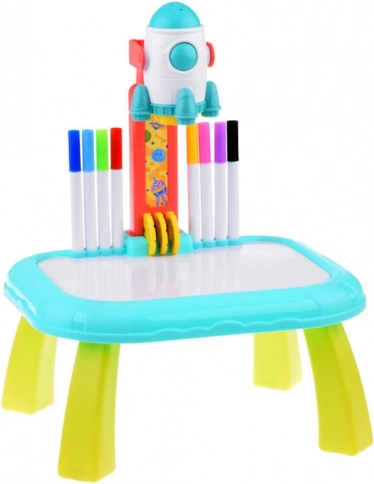Wecken Sie die kindliche Fantasie mit dem Projektionstisch Kosmos. Dank des Projektors in Raketenform werden Bilder auf die Fläche oder an die Wand projiziert, die Kinder leicht nachzeichnen und richtige Strichführungen lernen können. Das Spielzeug fördert Kreativität, Feinmotorik und Konzentration – ideal für Kinder ab 3 Jahren.