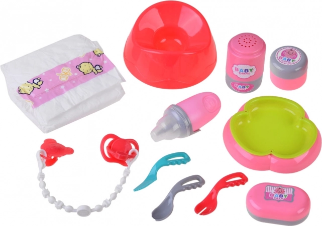 Dieses reich ausgestattete Set ermöglicht es Ihnen, sich der Pflege des Babys zu widmen und Zuhause, Mama oder Babysitter zu spielen.