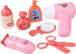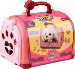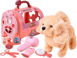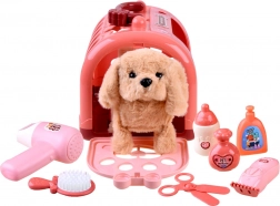 Föhn, Bürste, Kamm, Schere, Trimmer, Fläschchen und Aufkleber verwandeln jedes Spiel in einen kreativen Hundesalon.
