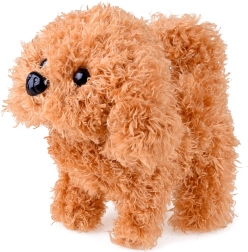 Der interaktive Hund mit Geräuschen und Bewegung weckt natürliche Neugier: Er läuft vorwärts, bellt, wedelt mit dem Schwanz und jault sanft, wenn man ihn am Kopf streichelt. Das weiche, gelockte „Fell“ und das niedliche Aussehen erobern Kinderherzen im Sturm.