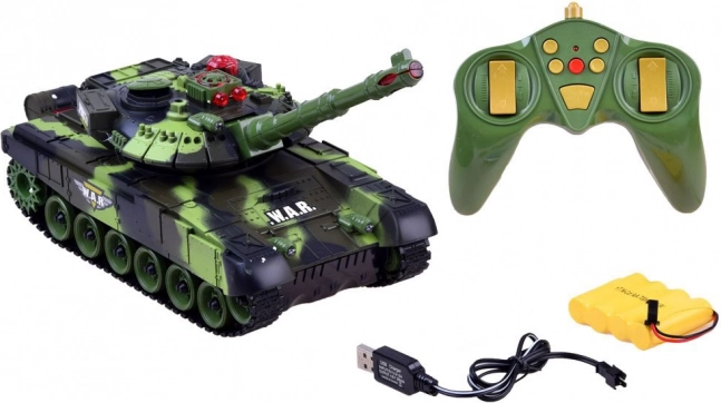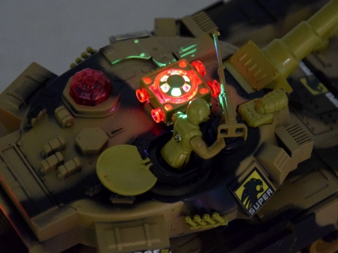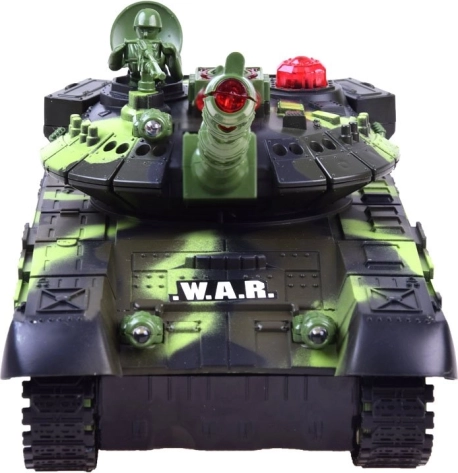 Der Panzer ist mit LED-Beleuchtung (Front-LEDs, Effektlichter im Turm) und Soundeffekten (Motor, Kanonenschuss, Maschinengewehr) ausgestattet. Nach drei Treffern wird der Gegner für ca. 30 Sekunden außer Gefecht gesetzt und das Duell kann von vorne beginnen. Weiche Gummiketten sorgen für guten Grip und gleichmäßige Bewegung auf unterschiedlichen Untergründen.