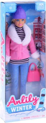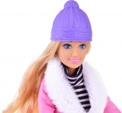 Entdecken Sie den Winterzauber mit der Anlily-Puppe, die eine Kombination aus niedlichem Look und modernem Stil mitbringt. Ihr langes blondes Haar lädt zum Kämmen und Stylen trendiger Frisuren ein, während das Winter-Outfit mit weichem Fellbesatz und der lila Mütze den modischen Look unterstreicht.