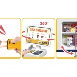 Kinder können Waren scannen, Preise eingeben und mit Karte oder „bar“ bezahlen. Die klingelnde Kasse und der Leuchtscanner unterstützen realistisches Spiel und das Erlernen einfacher Mathematik.