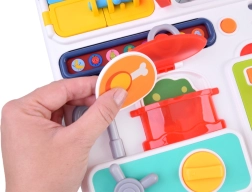 Die interaktive Küchen-Tafel sorgt für stundenlangen Spaß für Ihre Kleinen. Sie besteht aus hochwertigem Kunststoff und enthält viele Elemente, die die geistige Aktivität anregen. Jede Spielsitzung ist durch melodische Geräusche und blinkende Lichter einzigartig.