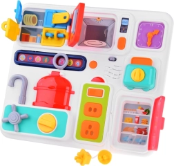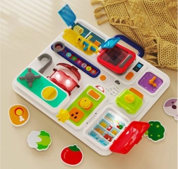 Interaktive Küchen-Tafel ist eine großartige Möglichkeit, Ihr Kind zu beschäftigen und zu fördern. Dieses bunte Gerät bietet viele Tasten und Schalter mit Licht- und Soundeffekten, um die Fantasie und Motorik zu unterstützen.